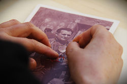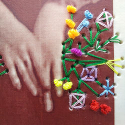 Transferencia de fotos sobre porcelana bordada con hilo de colores