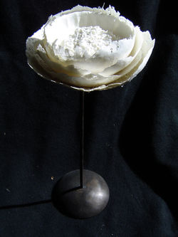 Porcelana con papel, arroz, lentejas, fideos... y forja